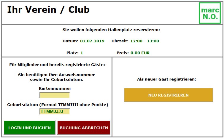 - freie Auswahl zwischen einem und mehreren Plätzen (Courts)